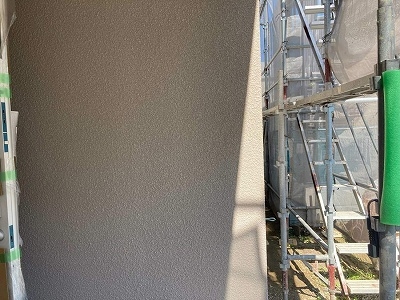 今回、正面部分は塗り壁仕上げにしたのですがイメージ通りの色に仕上げて頂いて嬉しかったです♪
