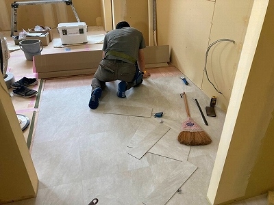 壁紙以外にも今回は水回りの床にフロアタイルを使用するため、そちらも内装屋さんに仕上げて頂きます。