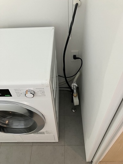 写真は洗濯機の給排水管・電源との接続部の様子。
