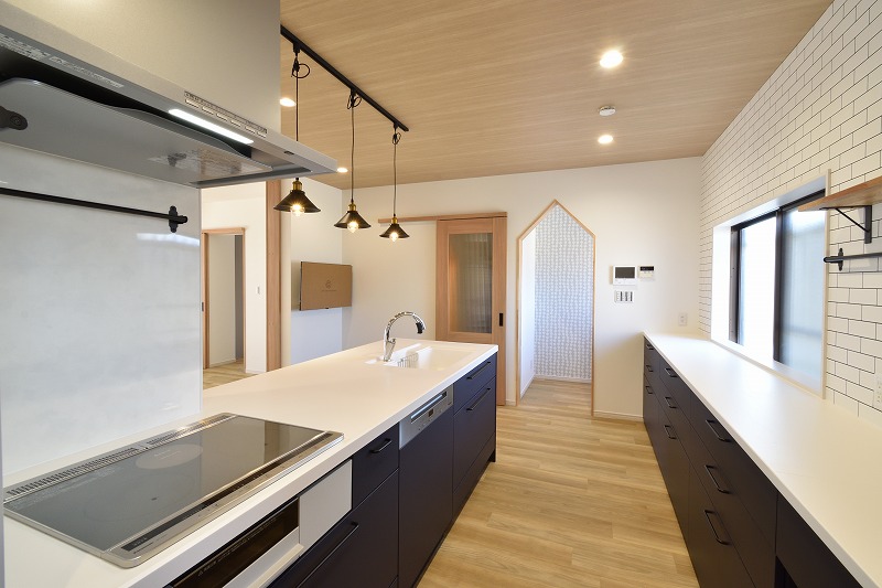 もともと東側にあったキッチンを北側に配置し、リビングを見渡せる設計にしました。