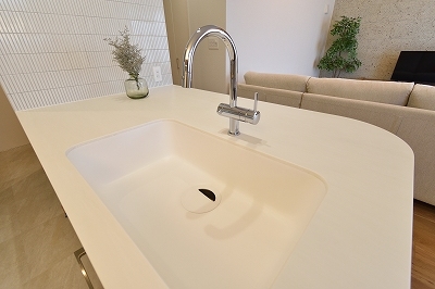 シンクも同素材なので一体加工ができお掃除もしやすいです。