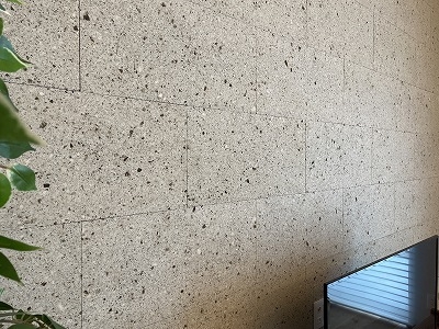特徴的なTVの裏の壁面は天然の「大谷石」