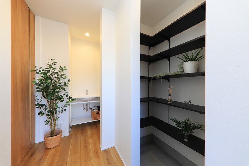 また、玄関右側には大容量のシューズクローク。可動棚になっているため、