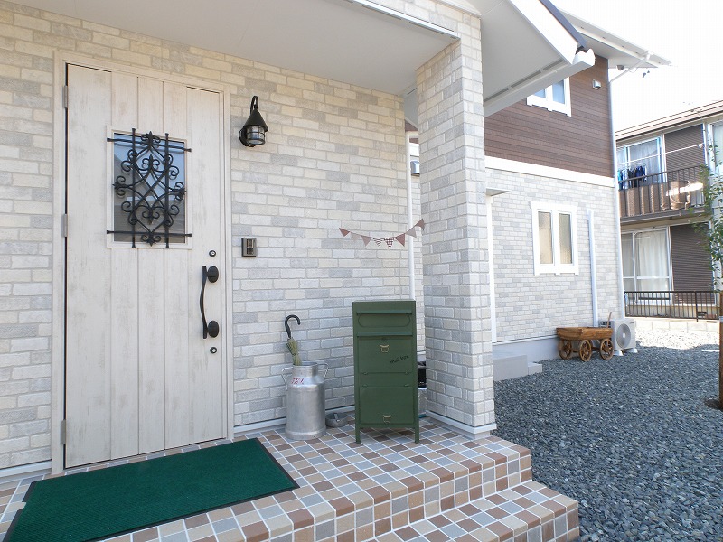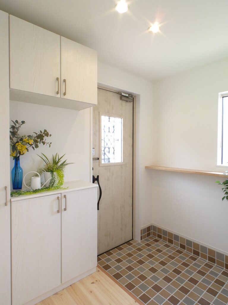 玄関にはお施主様がチョイスしたこだわりのタイルを貼りました。