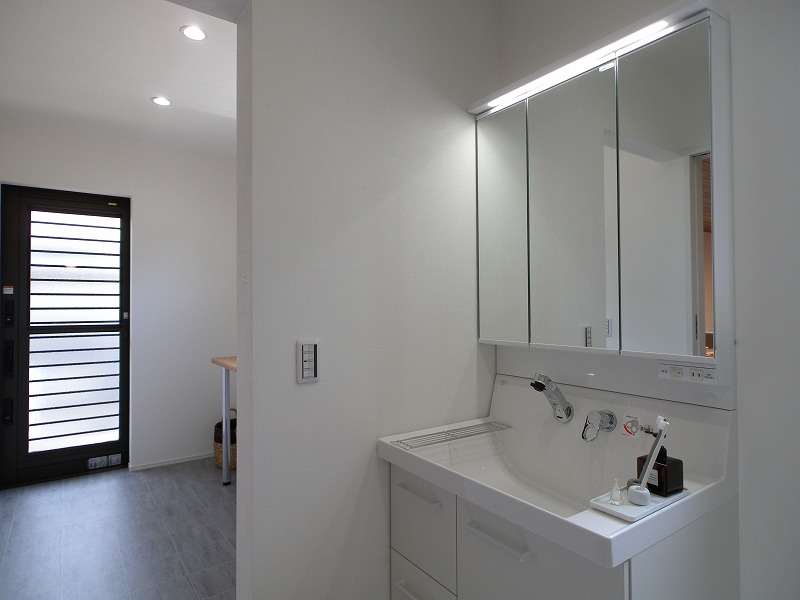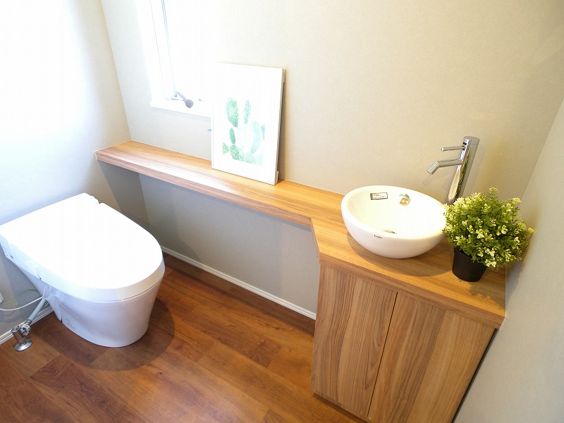 通常よりも少し広い、ゆったり設計です。オリジナルの手洗いカウンターも製作しました。