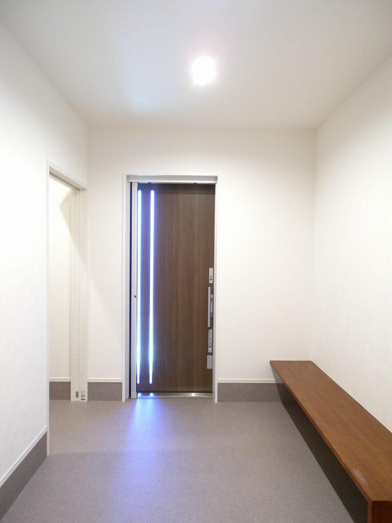 玄関ドアは引き戸を採用。