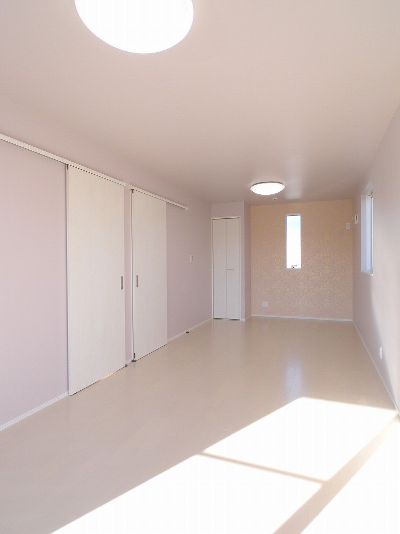 女の子が憧れるような可愛いお部屋になるように淡いピンク色のクロスでまとめました。