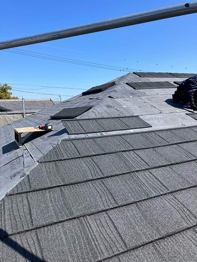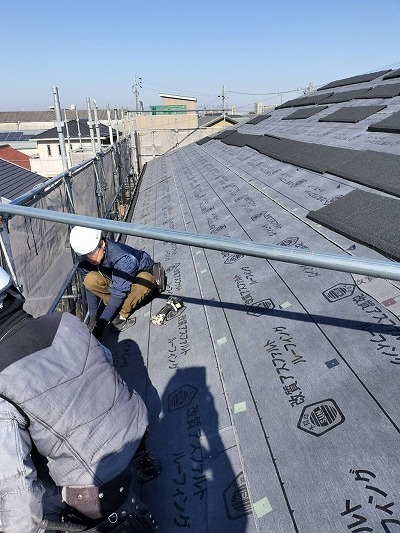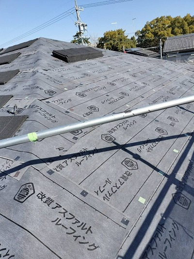 まずは既存の屋根の上にルーフィング(防水紙)を貼ります