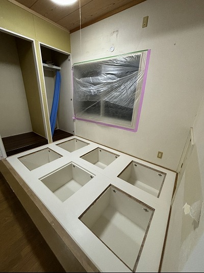 こちらの収納に重いものを入れても大丈夫なように、束を施工することをご提案させていただき、