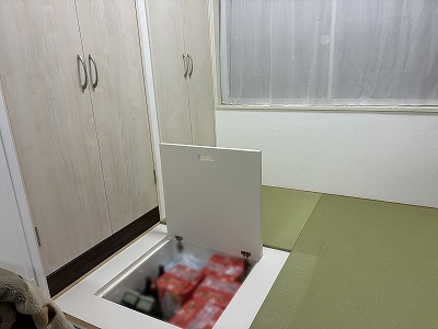 畳は置き畳になっており、畳を動かすと床下収納庫のようになっております