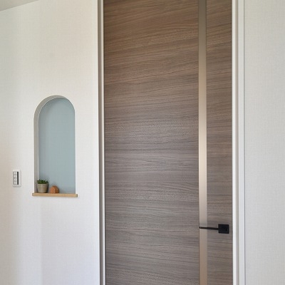 ニッチに扉をつけることで、飾り棚としてだけでなく収納スペースとして利用できます。