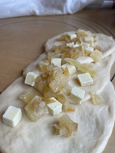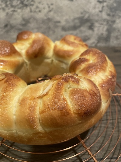 混ぜた生地をリング型に入れて仕上げるお菓子パン。
