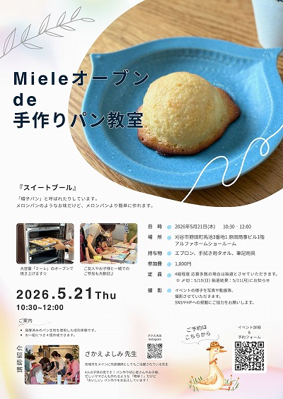 『 Mieleオーブン de 手作りパン教室 』5/21thu
