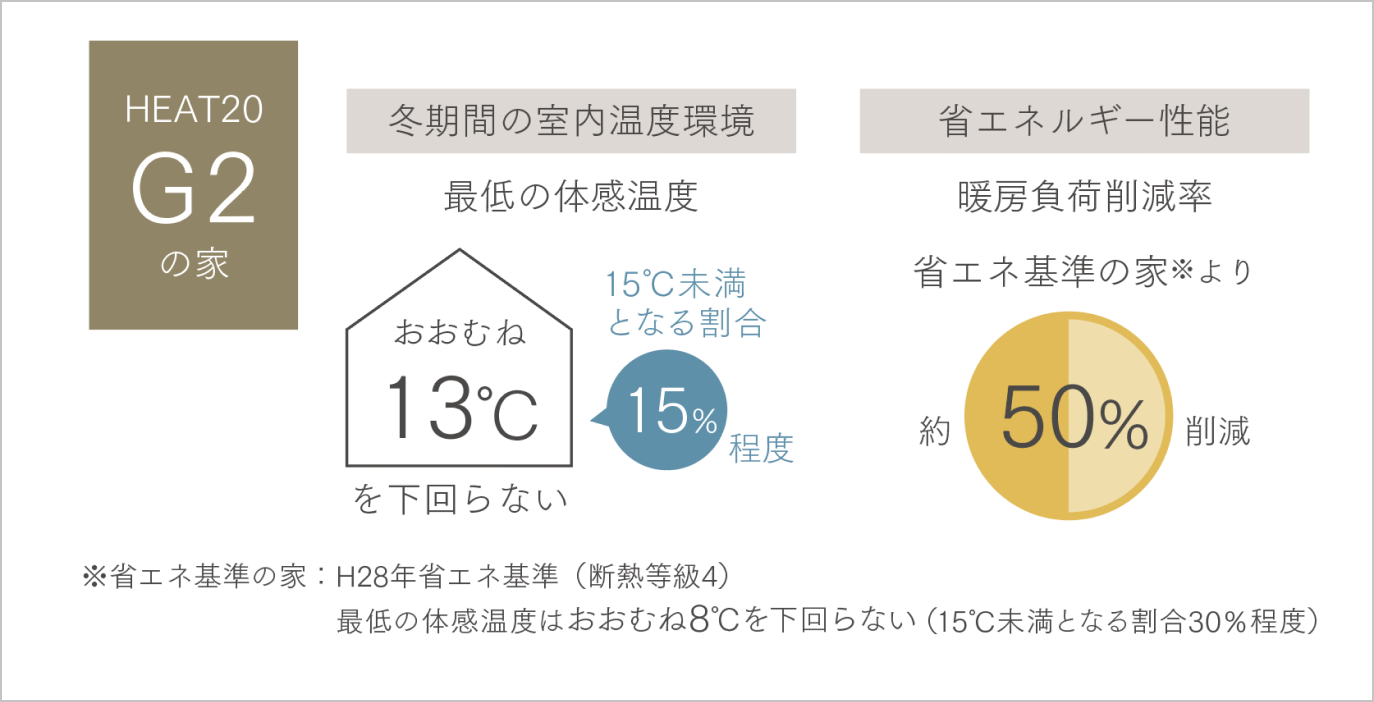 快適で省エネな家を目指すならHEAT20の定める断熱性能基準G2グレード以上を。今後の日本の住宅のあたりまえの基準になります。