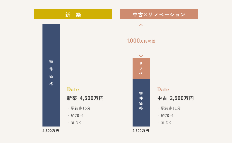 そのため、総額の工事費用が新築よりお得になるケースが多数あります。