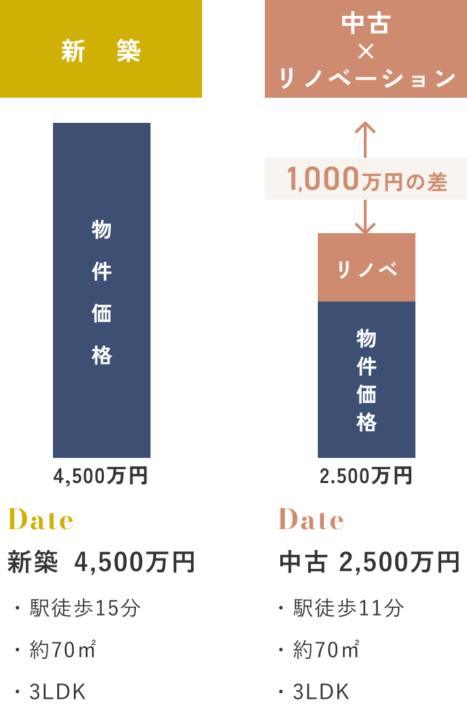 中古物件は駅近でも物件が出てくることがあるので、同じ平米数の住宅をリーズナブルに購入できるのが最大のメリットです。