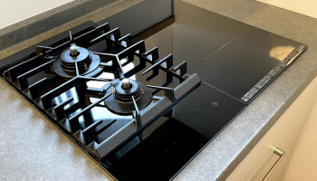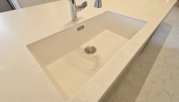 ドイツ製のシンク。SILGRANITと呼ばれる硬い素材で、汚れも染み込みにくいのが特徴です。カラーバリエーションも豊富で流行りのトープカラーも選べます。