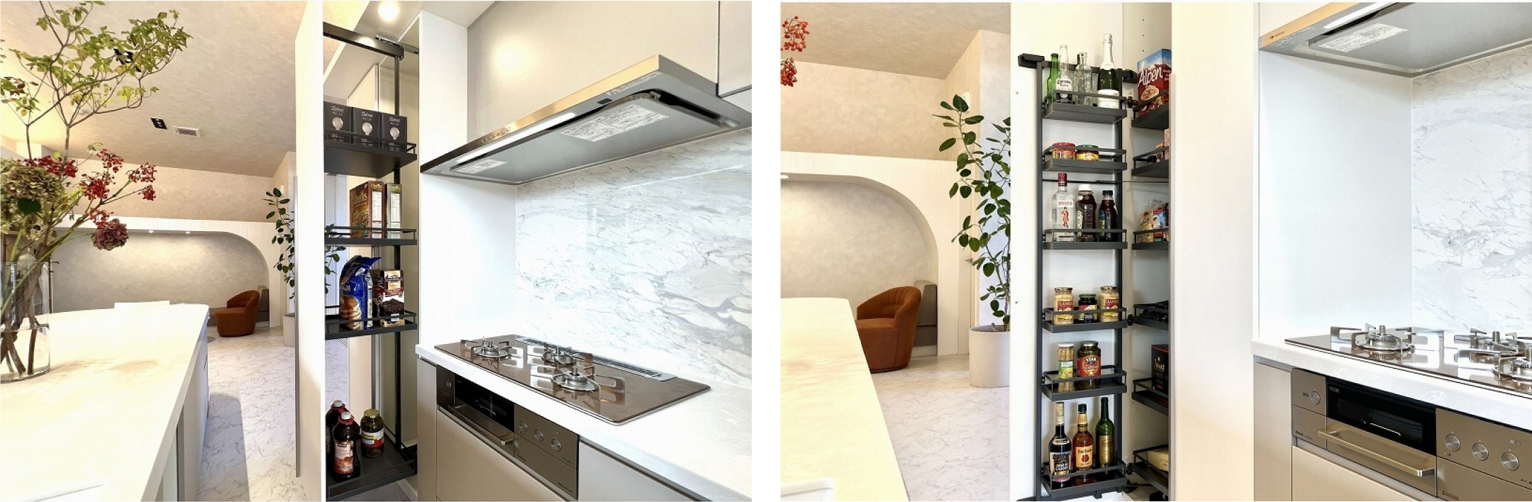 収納が手前に出てくる、奥行きの深い収納を使いやすくなるユニット。