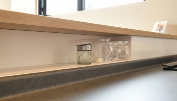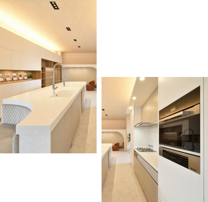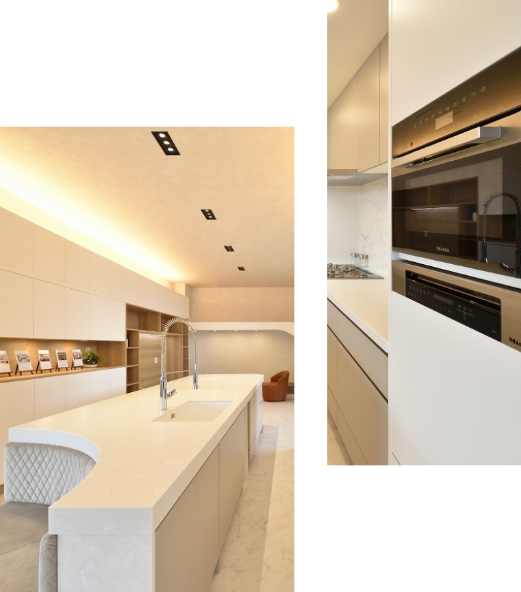 韓国製人工大理石。柔軟な加工性で、豊かな空間演出が可能。熱・衝撃に強く、人にも環境にも優しく安全を考えた素材です。