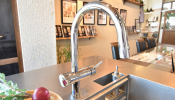 ドイツの水まわりのプレミアムブランドGROHE。まるでプロの厨房のような雰囲気を持ちながらも洗練されたデザインです。