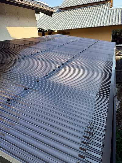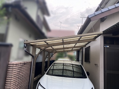 玄関庇の木部の塗装と、カーポートの波板の貼り替えも