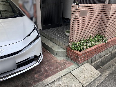 ・ポーチ部分の階段が邪魔で、車の駐車アシストが使用できない状態
