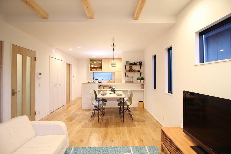 LDKは雑貨をたくさん飾るために色数を抑えシンプルにまとめました。
