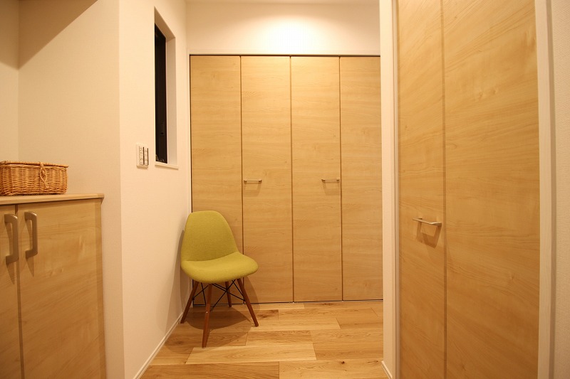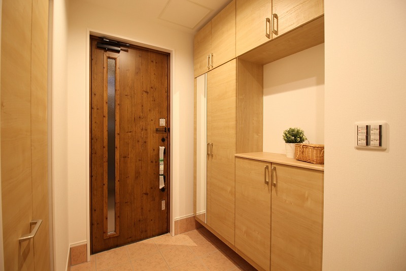 玄関右手には土間収納、正面にはクローゼットを設け入れる物に合わせて収納もたっぷり計画。