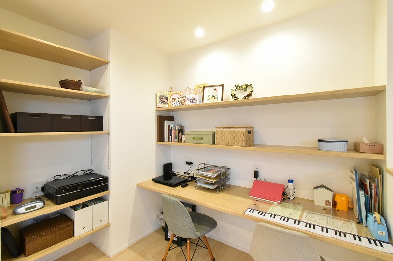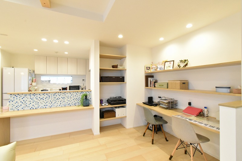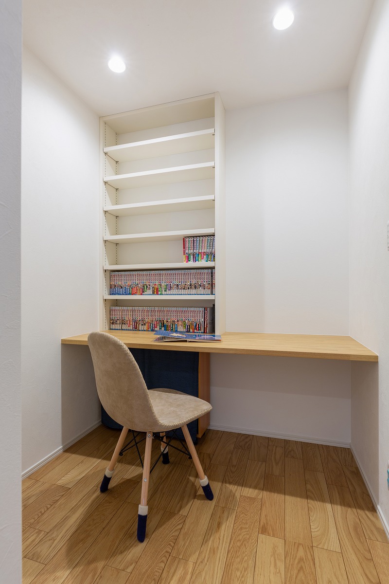 カウンターの上には本棚も取り付け、本をたっぷり収納することができます。