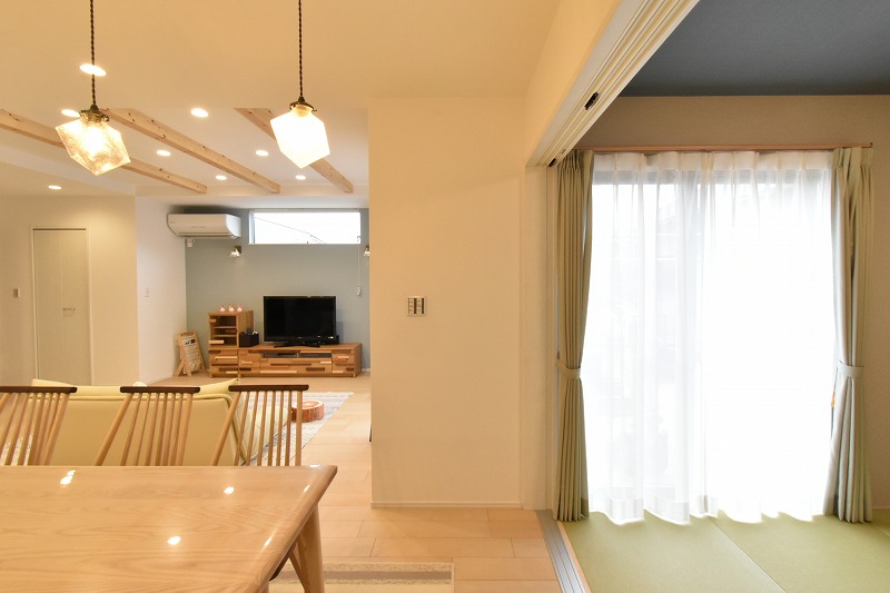 普段は引戸を開けておけば広々と、来客時などは閉めてプライベート空間として使うことができます。