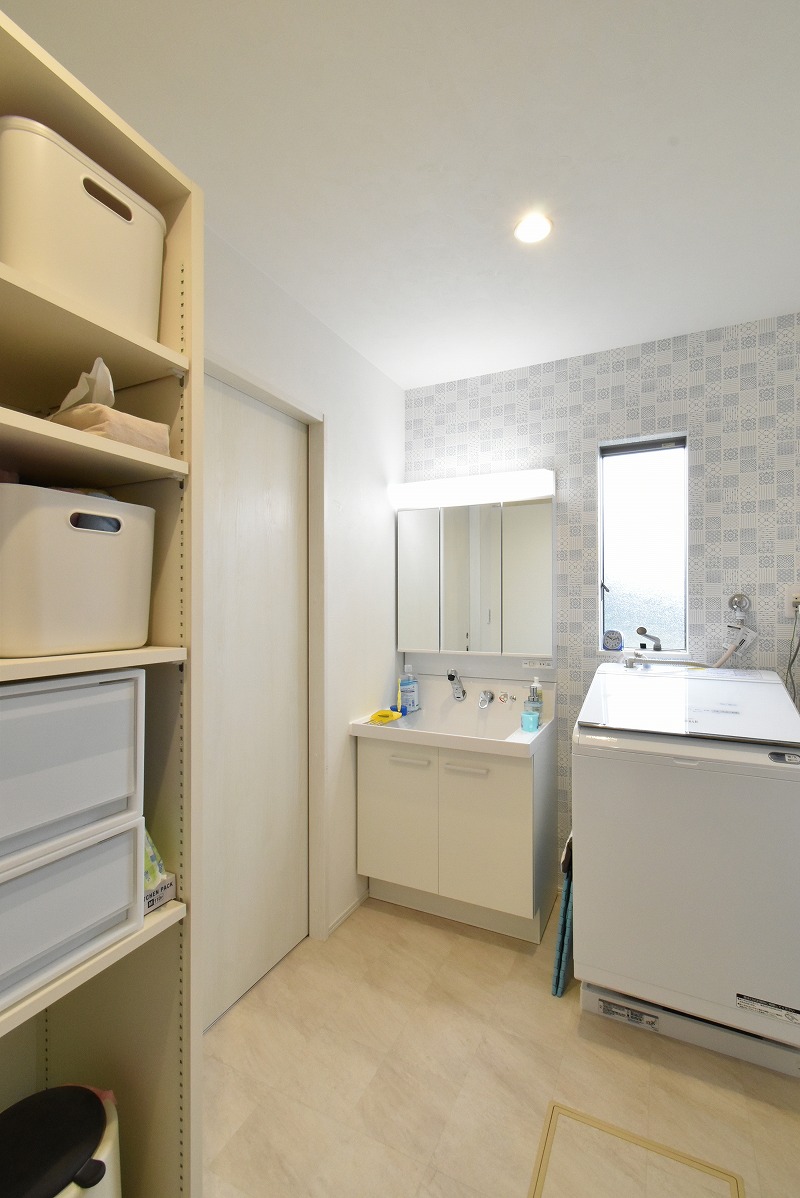 玄関→洗面→キッチンと繋がる間取りで家事動線もばっちり。