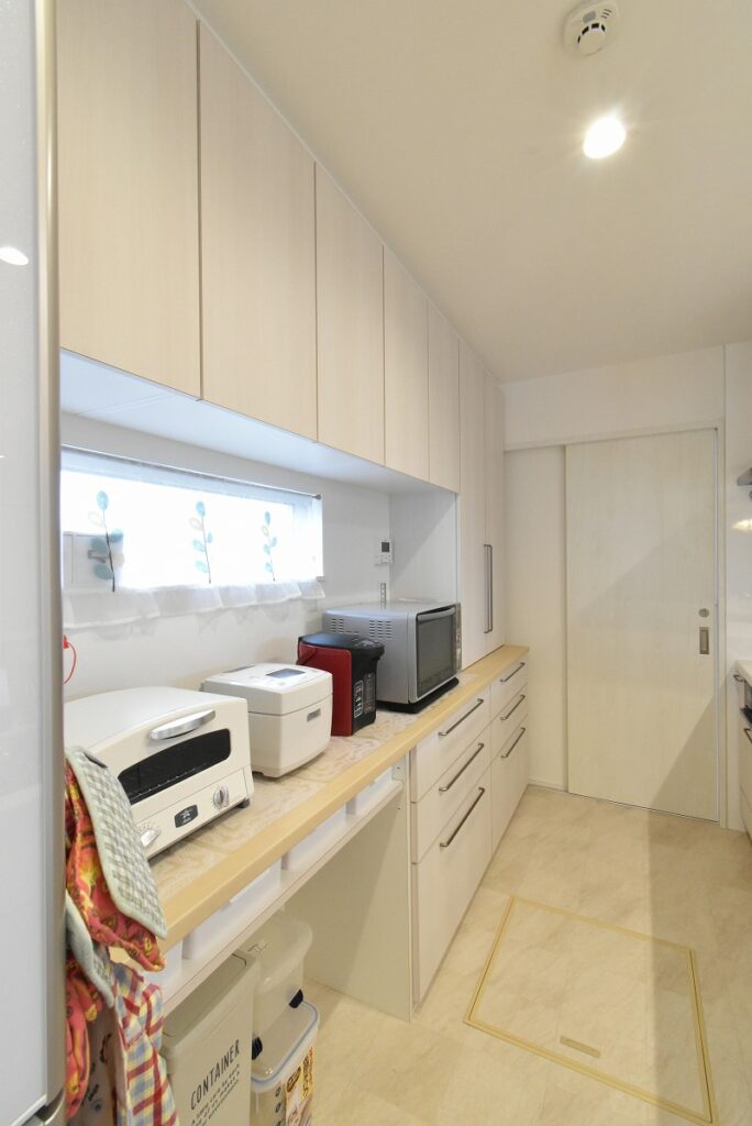 キッチンとダイニングテーブルが横並びになるレイアウトです。
