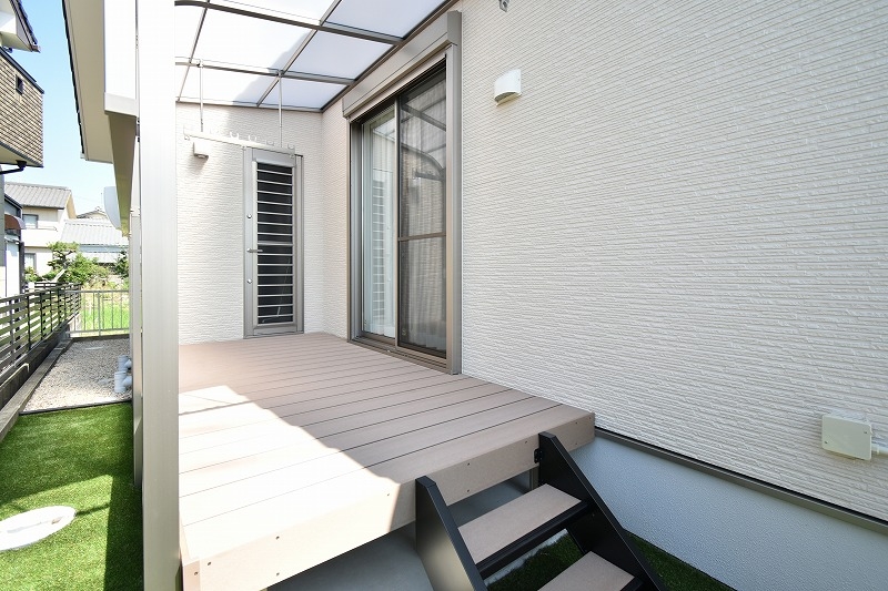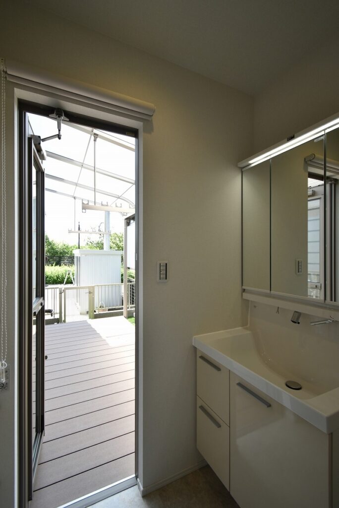 キッチンから洗面脱衣室→ウッドデッキ→LDKと動線がとても魅力的で収納計画もしっかりとされた住みやすい平屋です。