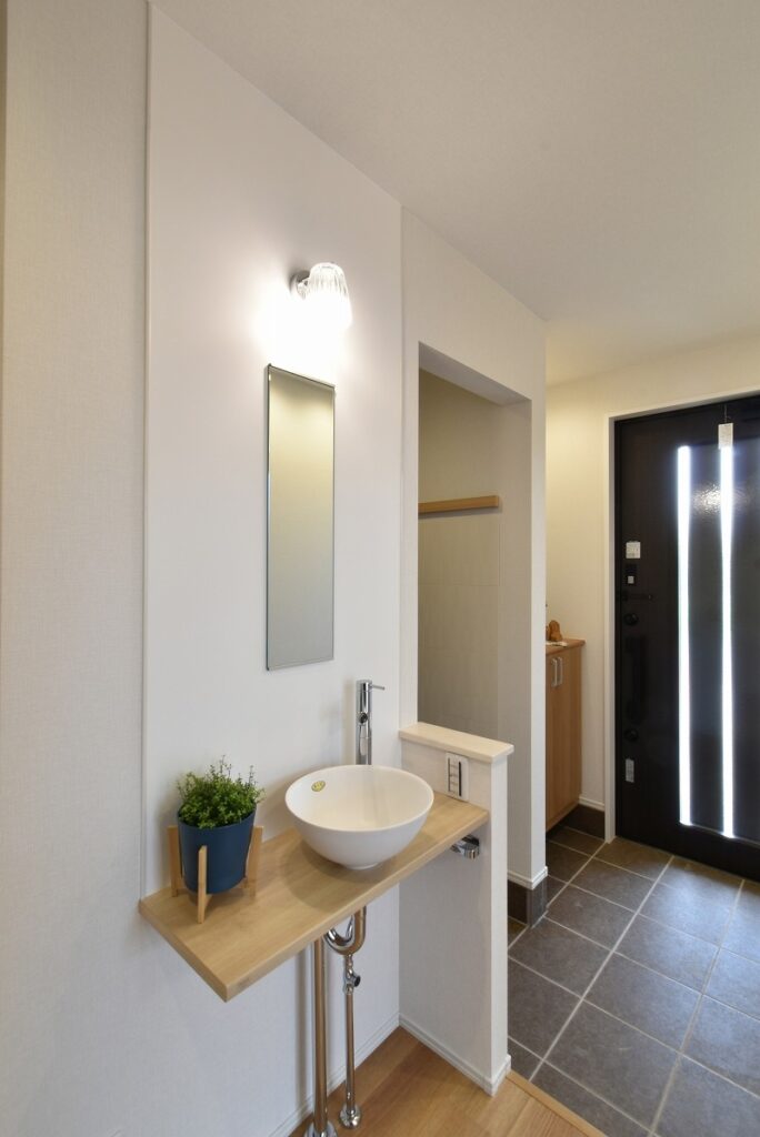 お打合せの際はご家族とわんちゃんそれぞれが快適に過ごせるようにお話を重ね、滑りにくい床材や玄関先に手洗いを設けるなど細部までしっかりとご検討頂きました。