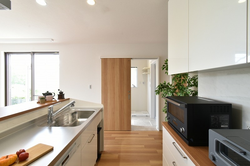 広々とした明るいLDKに、機能性にこだわったオーダーキッチン、暮らしやすさを考慮した理想的な間取りのお住まい。