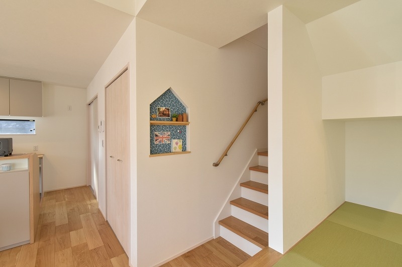 リビングの隣で小上がりになっているので腰を掛けるスペースとしても◎