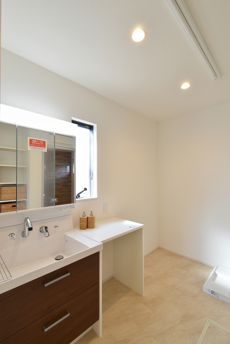 洗面化粧台の高さに合わせてカウンターを設けました。