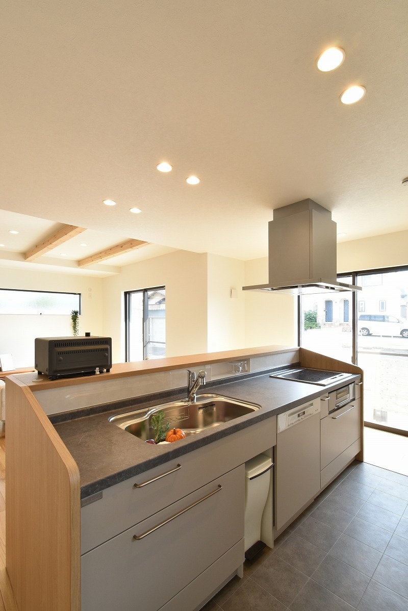 キッチンには、奥様のご希望に合わせたアイランド型オーダーキッチンを設置。