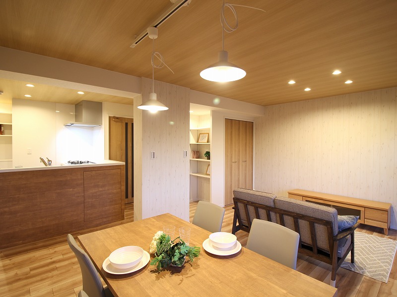 名古屋市緑区で築31年経過した中古マンションにL型対面キッチンを組み込んだリノベーション事例です。