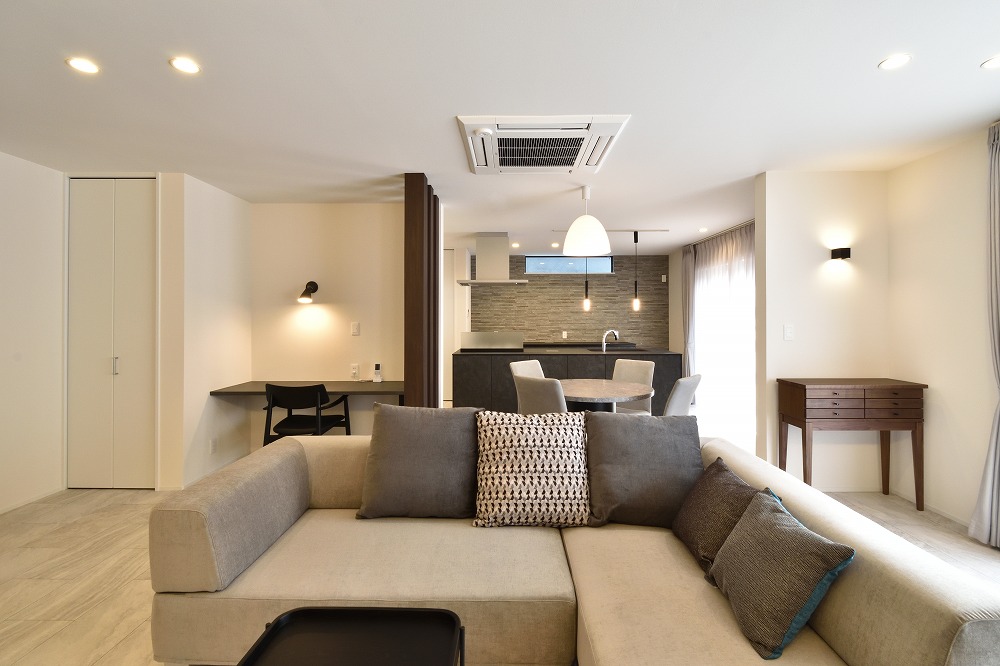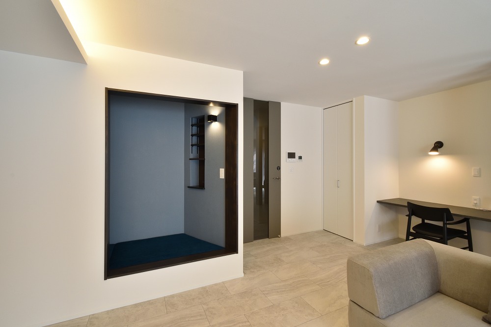 間接照明は空間に広がりを持たせる効果もあります。