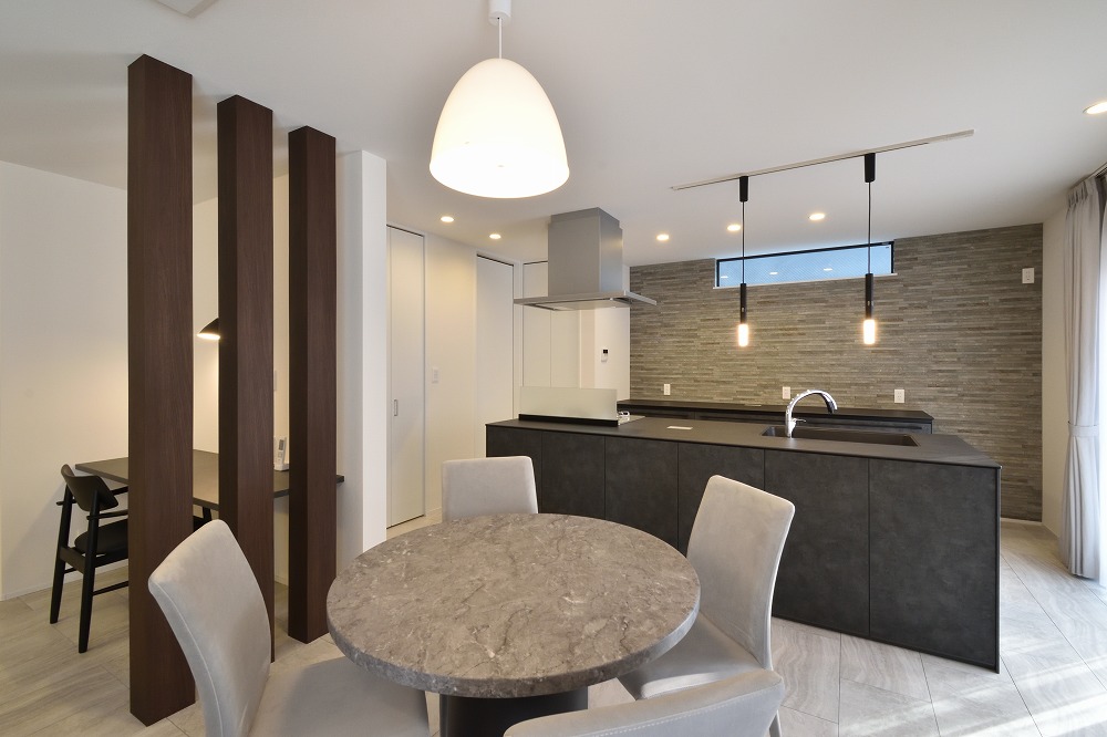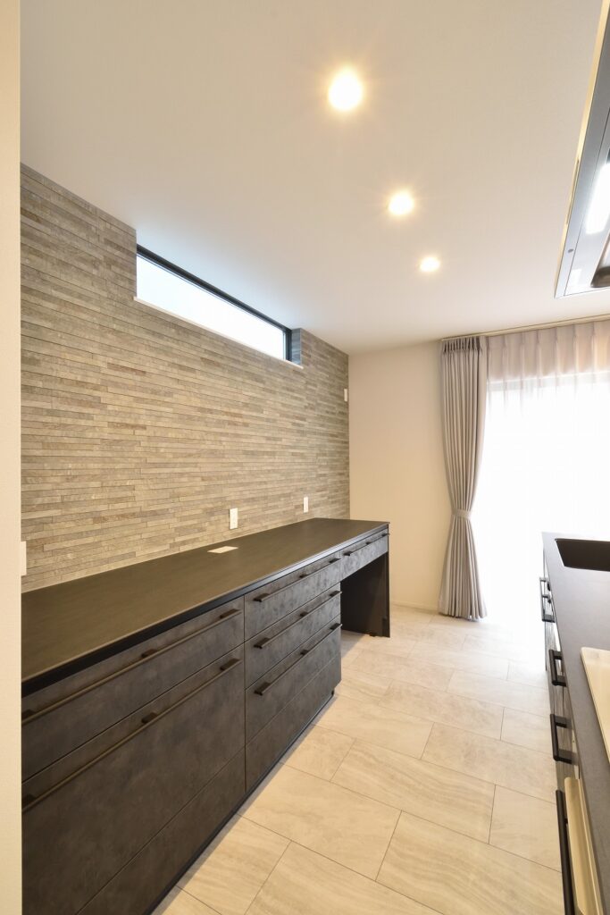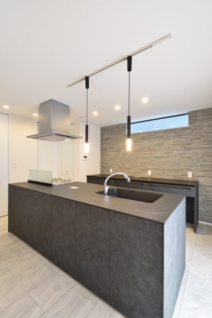 素材感のあるスタイリッシュなキッチンです。