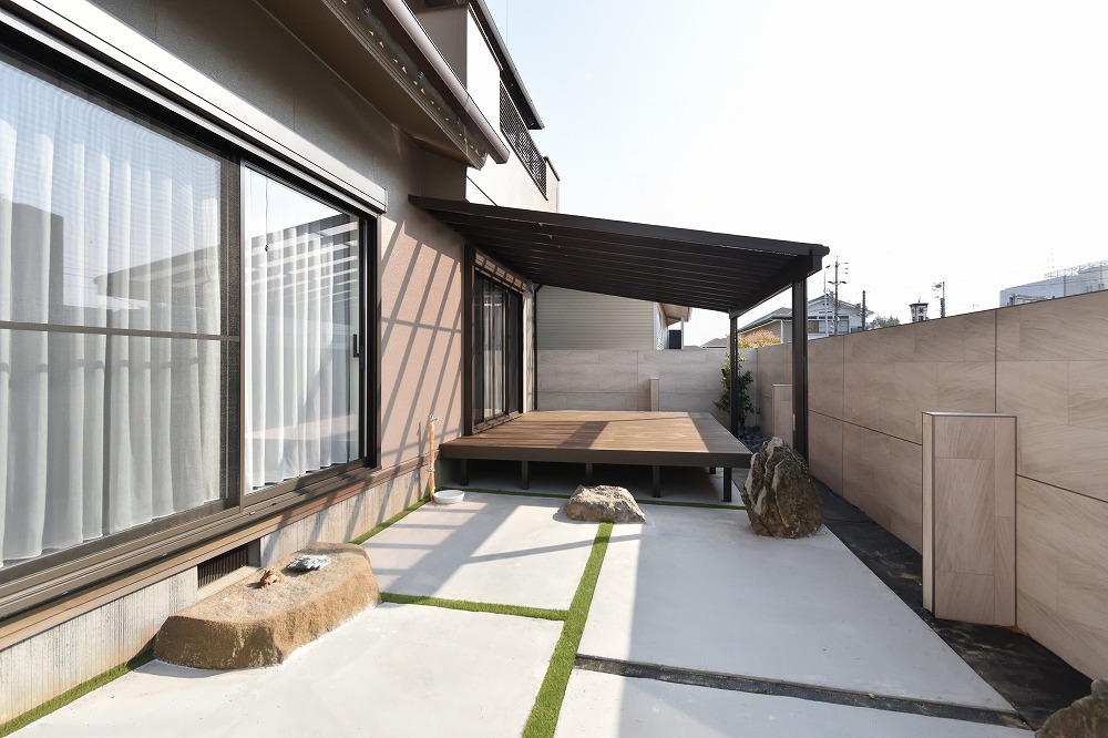 土間コンクリートを打つ位置にもこだわったお庭スペースとなりました。