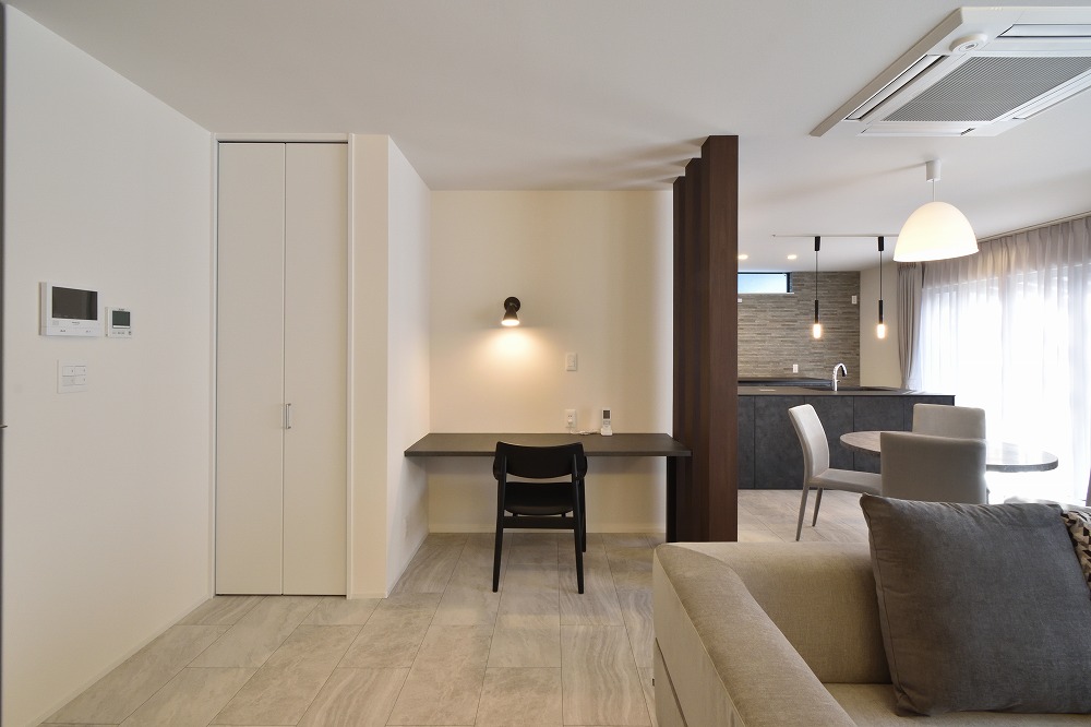 右手は壁にせず、ルーバーのような柱にすることでLDKと緩やかに繋がります。